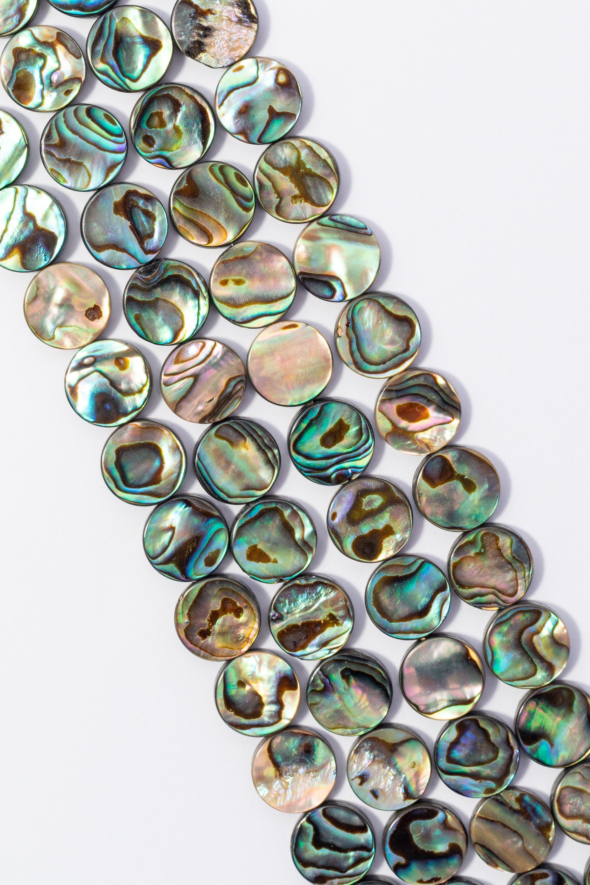 | 12x16 mm | 002719 | Cuentas ovaladas de mayor Tamaño, con vetas naturales y reflejos tornasolados. Ideales para collares o piezas centrales con estilo elegante y orgÁnico. |
