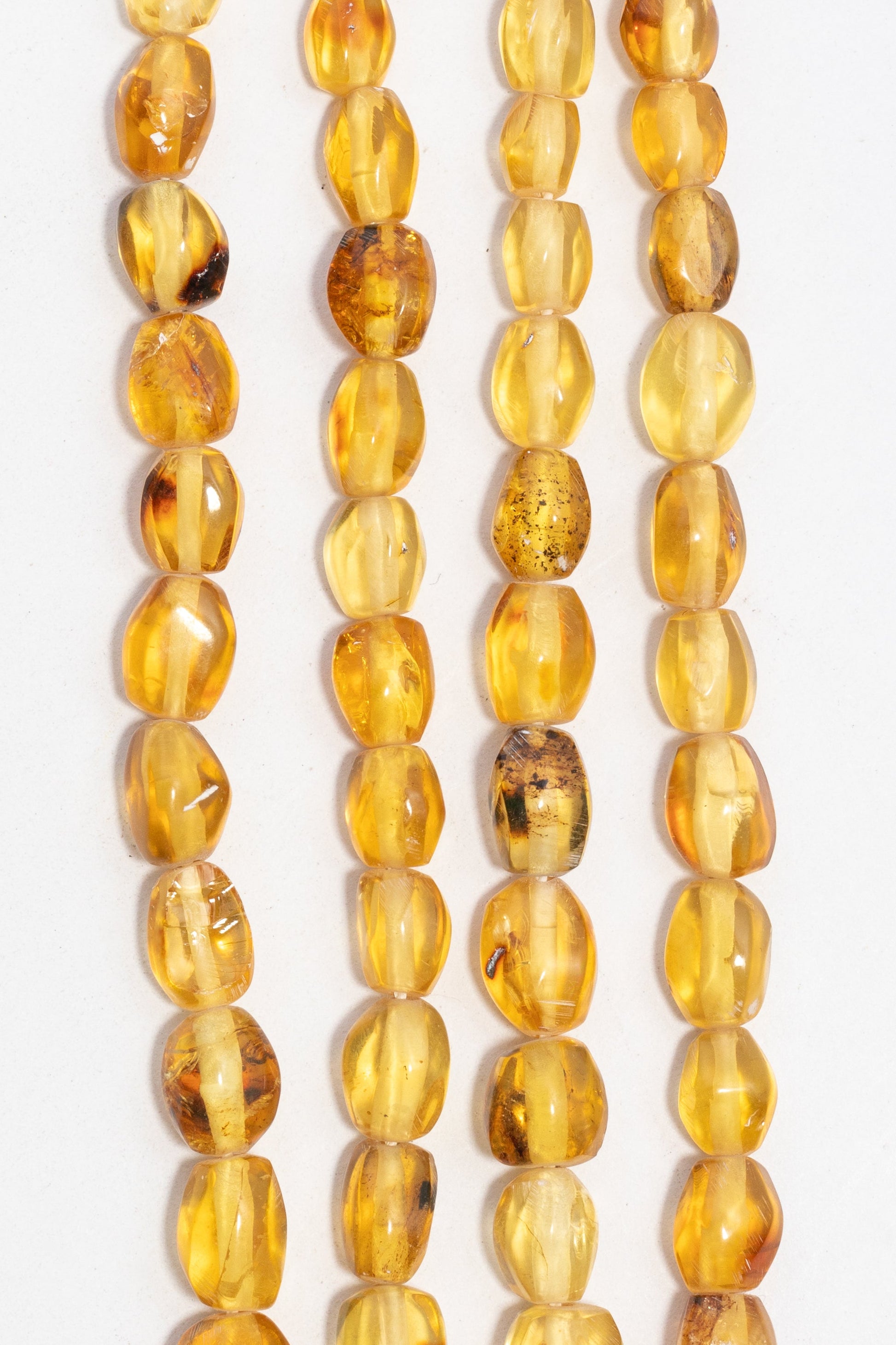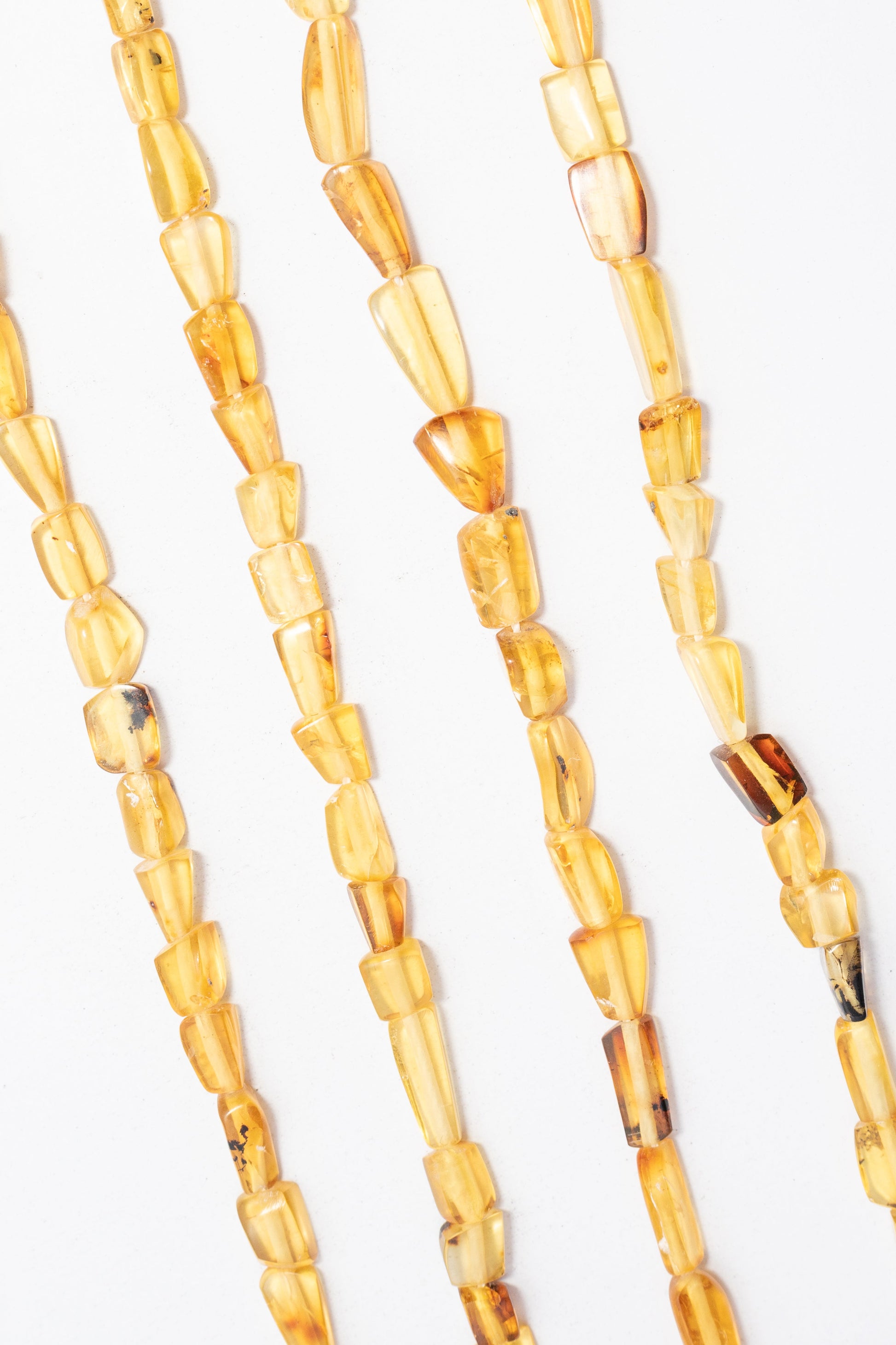 | 4x5-7x10mm | 003958 | 535.2 | Cuentas de Ámbar natural con forma de nugget irregular y facetado sutilmente, que conserva su apariencia de resina. Tonalidades de Ámbar coñac y miel, con inclusiones oscuras que le dan profundidad. Ideales para joyería boho o diseños orgÁnicos, como collares largos o pulseras que busquen una textura r̼stica y un color cÁlido. |