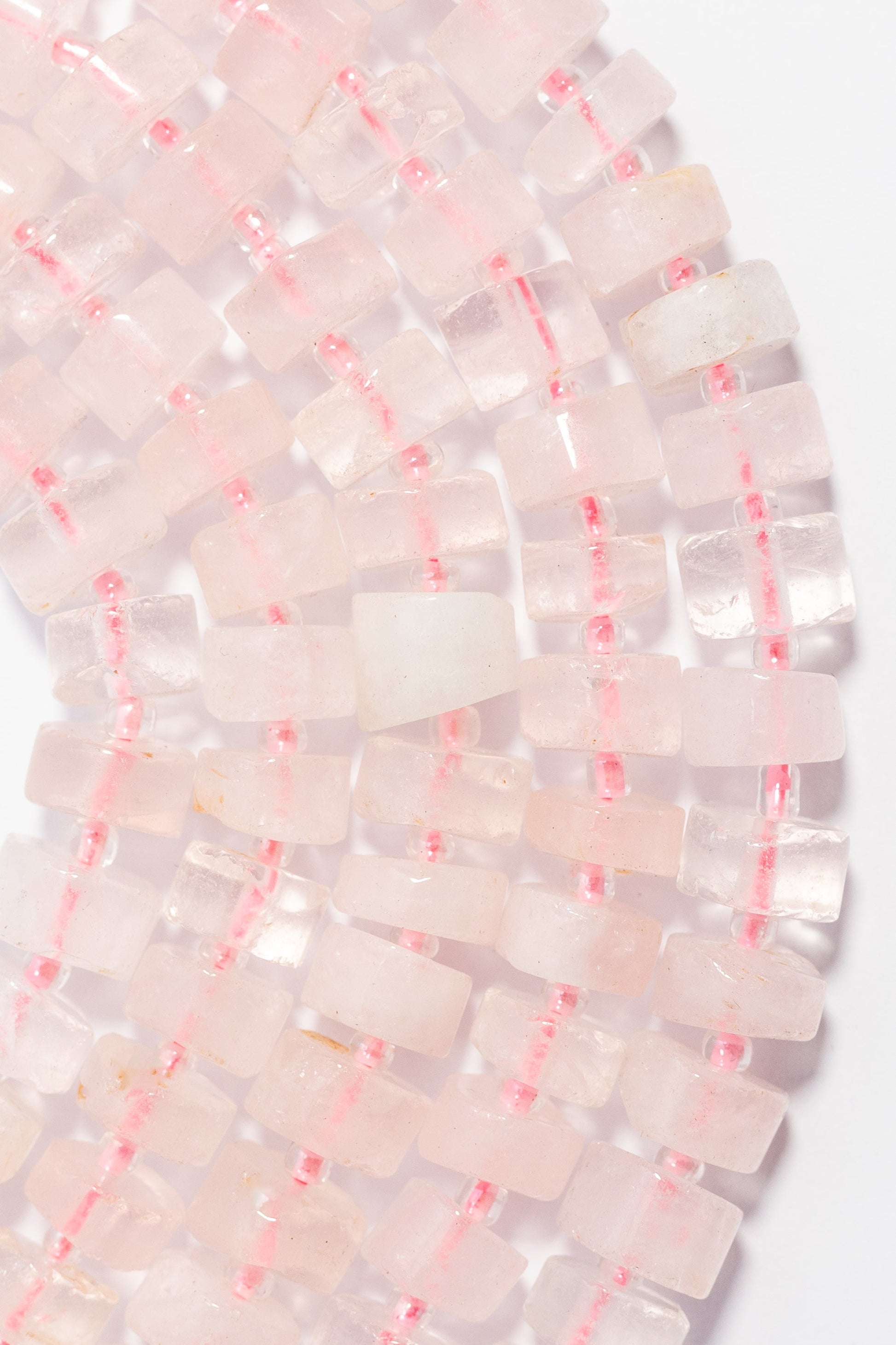 | 10mm | 004220 | 559.2 | Cuentas de piedra natural (cuarzo rosa) de Tamaño pequeño, con forma de rondel cuadrado/barril aplanado que acent̼a su suavidad. Color rosa pÁlido, suave y uniforme, con opacidad trasl̼cida. Ideales para joyería delicada, de capas o geométrica, que busquen un color calmante y una silueta angular y plana. |