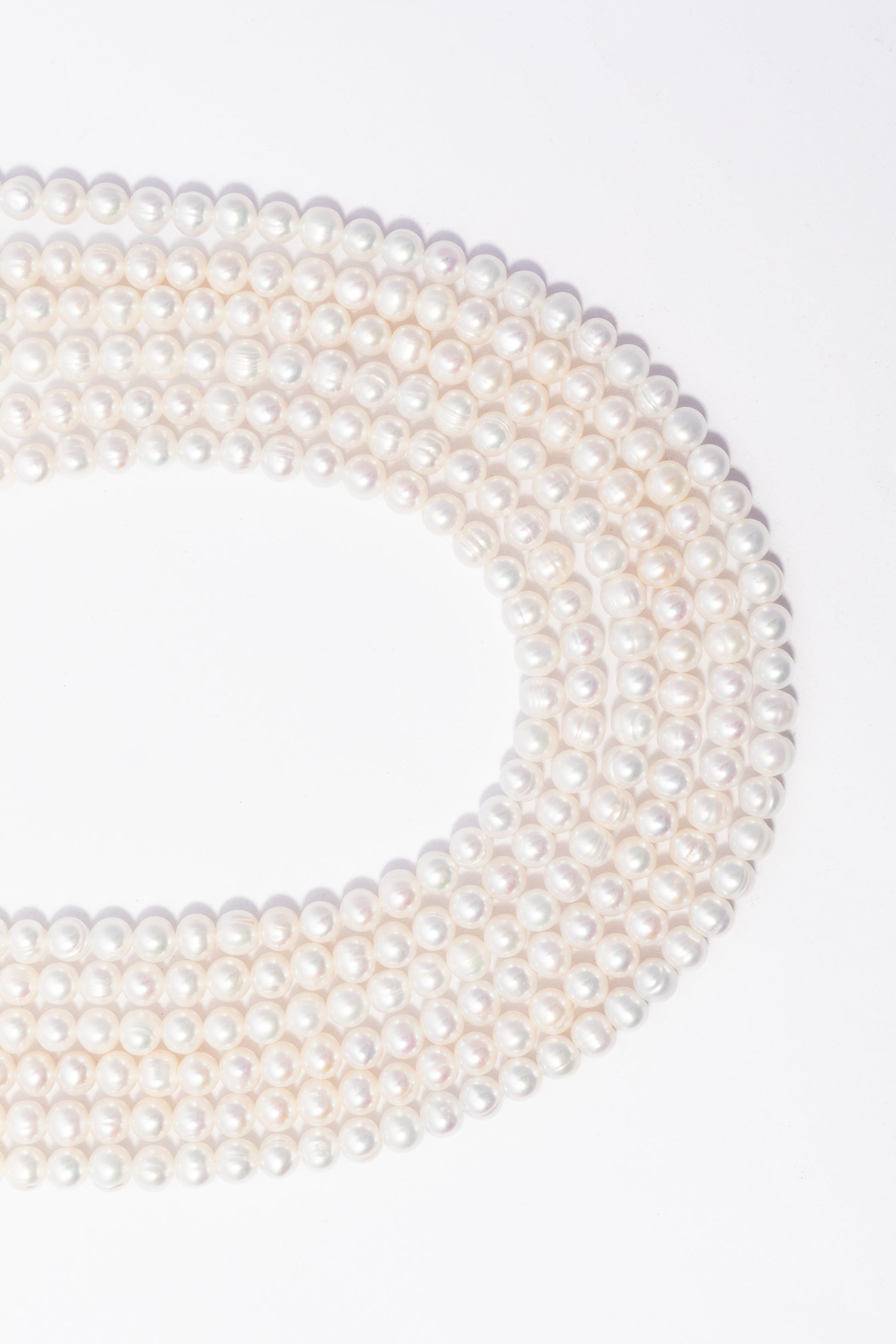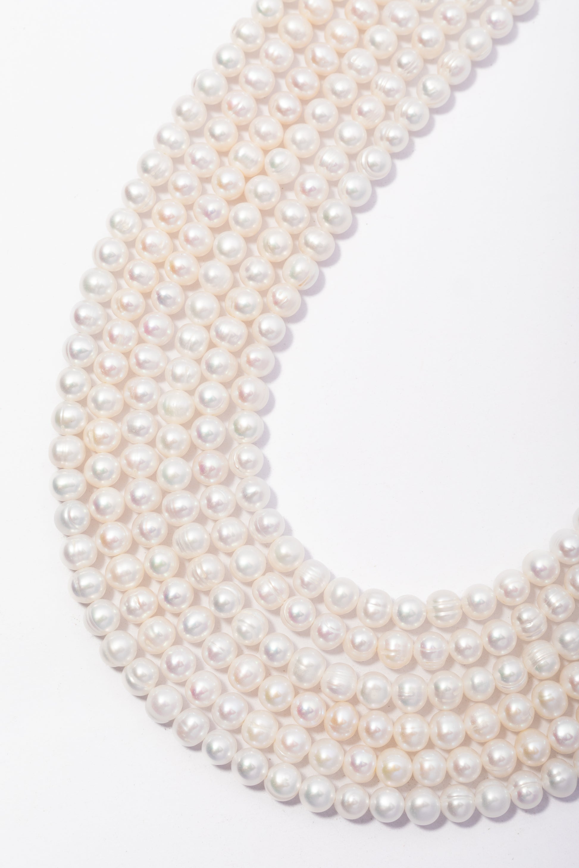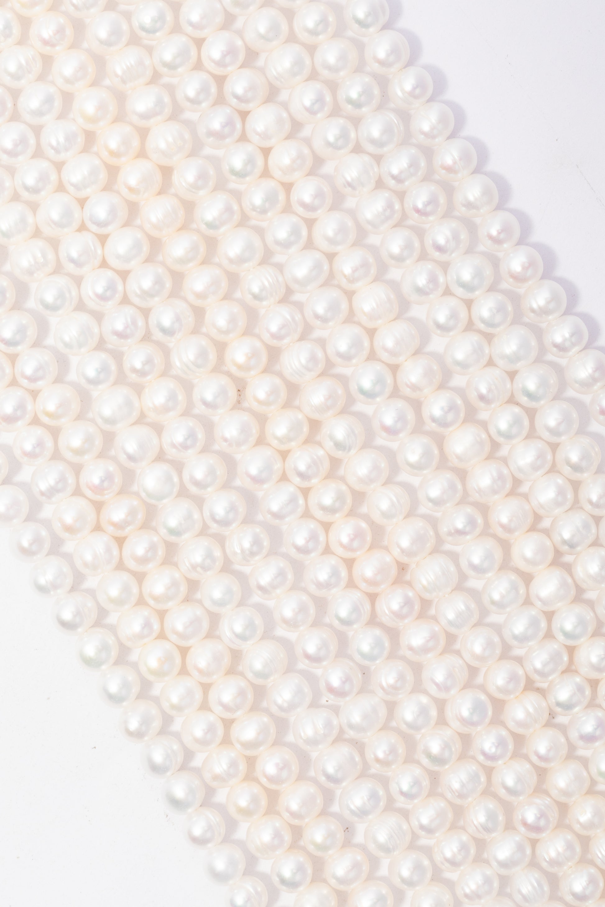 Esta tira de piezas presenta un diseño de perlas cultivadas de forma esférica o circular, caracterizada por una estructura geométrica uniforme, compacta y de gran versatilidad estética. Su apariencia destaca por una luminosa y clásica paleta en color blanco puro, que presenta una superficie de brillo nacarado suave con una textura lisa y constante que realza la elegancia natural de cada gema. Debido a su diseño de silueta tradicional y su tamaño equilibrado, es un componente excepcional para la joyería de autor, siendo ideal para confeccionar collares de estilo atemporal con un ritmo visual armonioso, diseñar brazaletes delicados de múltiples hilos o crear accesorios nupciales que busquen una sofisticación distinguida y limpia.