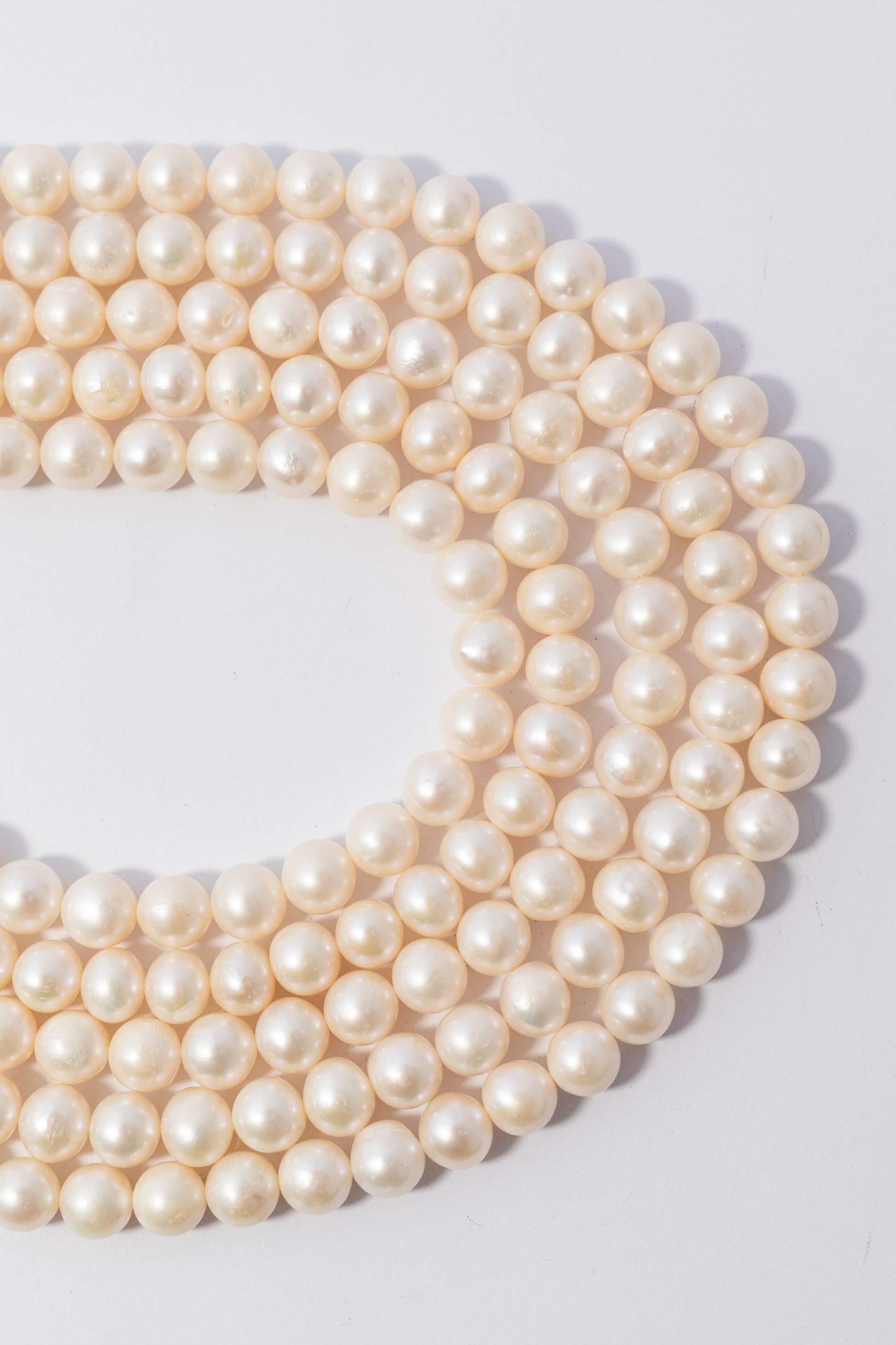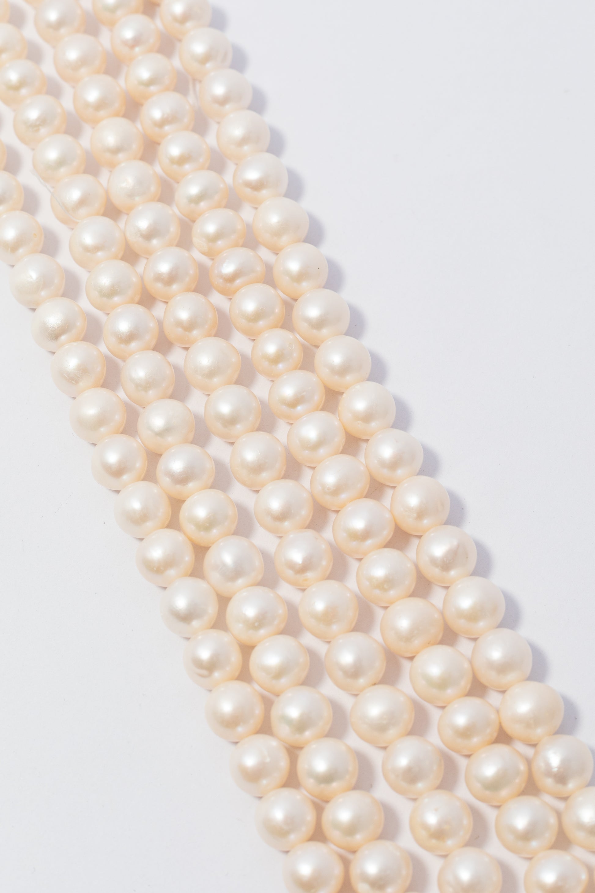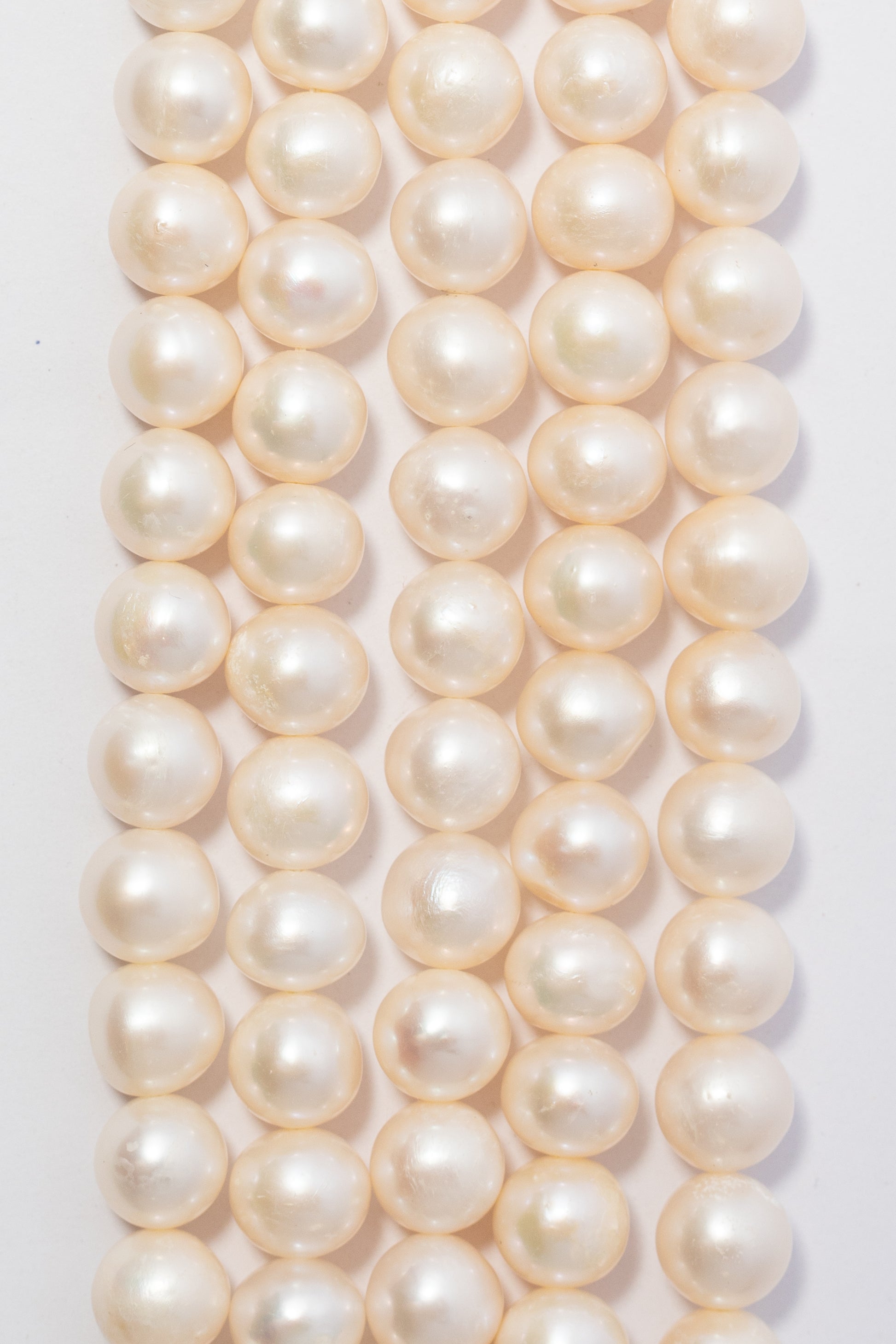 Hilo de perlas cultivadas con forma esférica perfecta, presentadas en una tira versátil y de fácil uso. Cada perla destaca por su brillo nacarado suave y luminoso, con una superficie lisa en tonos blanco crema que evoca elegancia clásica. Su tamaño prominente y estructura uniforme las convierten en la opción ideal para crear collares sofisticados, brazaletes de impacto y joyería nupcial de diseño atemporal. Perfectas para joyeros artesanales que buscan calidad y distinción en cada pieza.