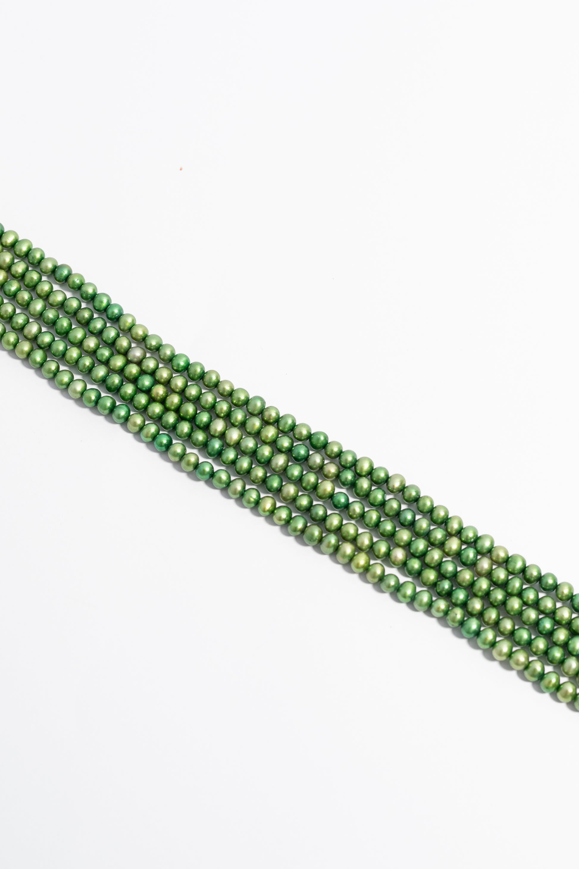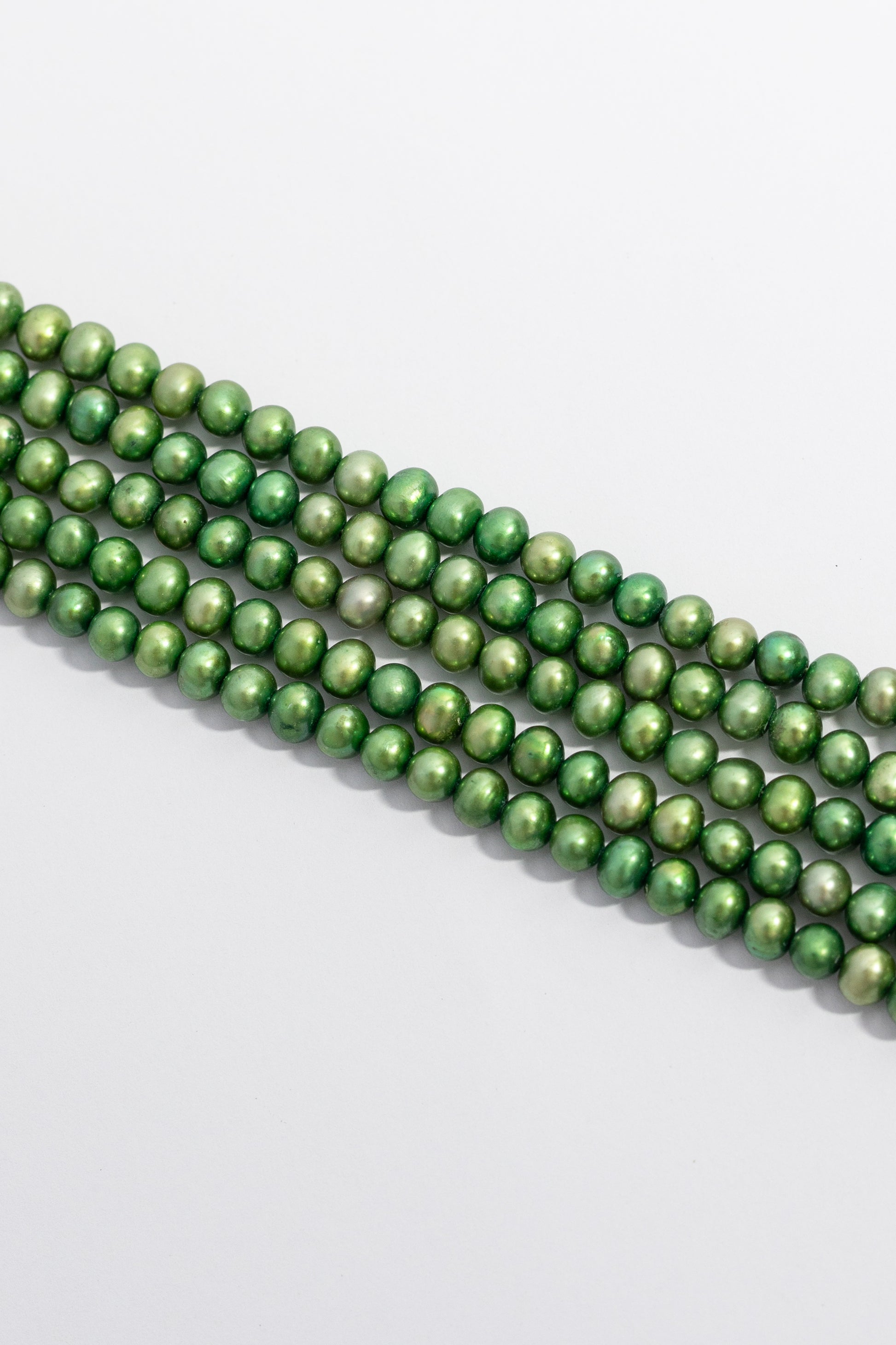 Esta tira de piezas presenta perlas cultivadas de forma esférica y uniforme, con una estructura compacta y versátil ideal para trabajos de detalle. Su superficie brilla con un intenso efecto metálico e irisado en tonos verde vibrante con destellos dorados que cambian con la luz. De silueta clásica y tamaño equilibrado, es perfecta para crear gargantillas contemporáneas, brazaletes de múltiples hilos o accesorios que transmitan elegancia sofisticada con un impacto visual notable.