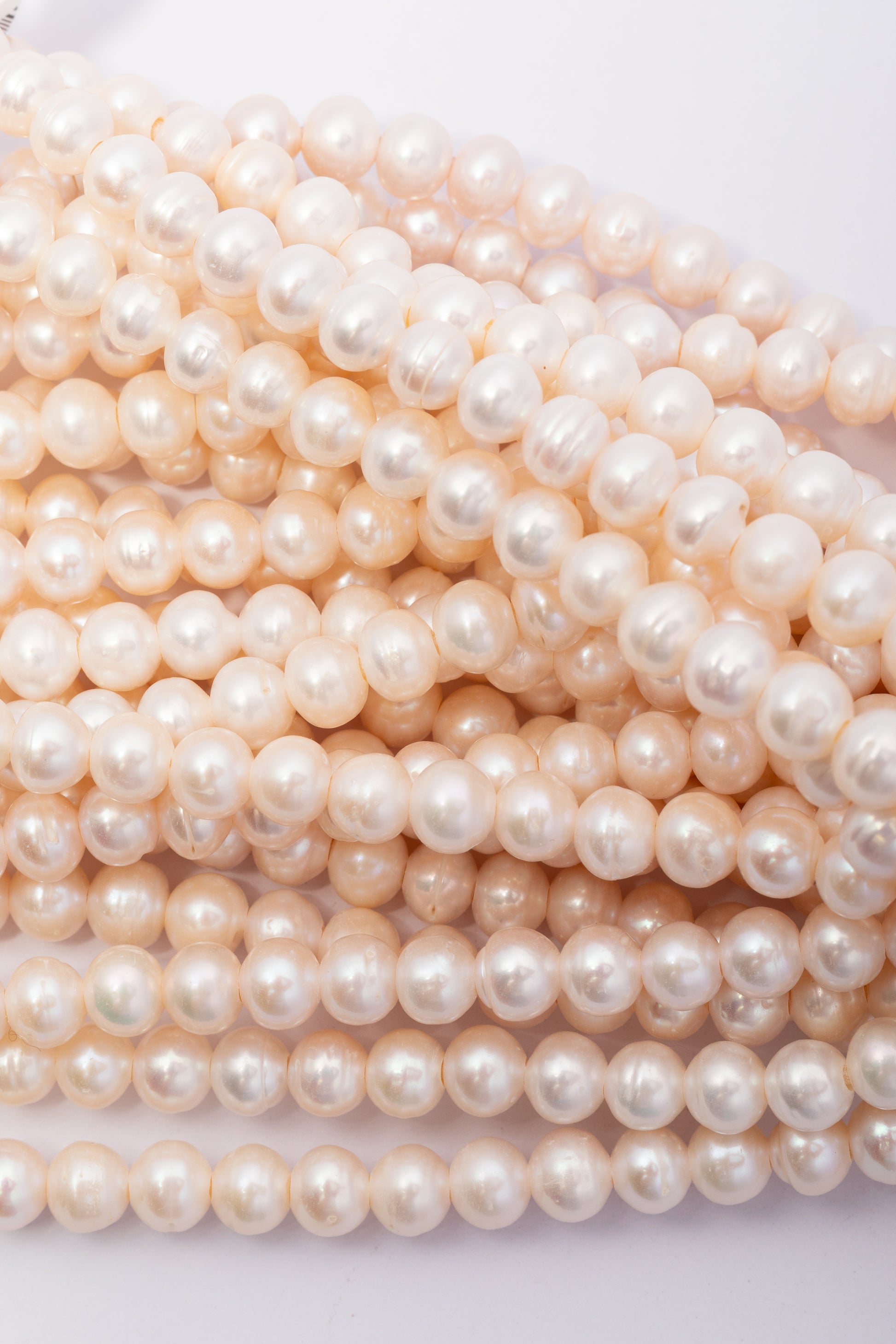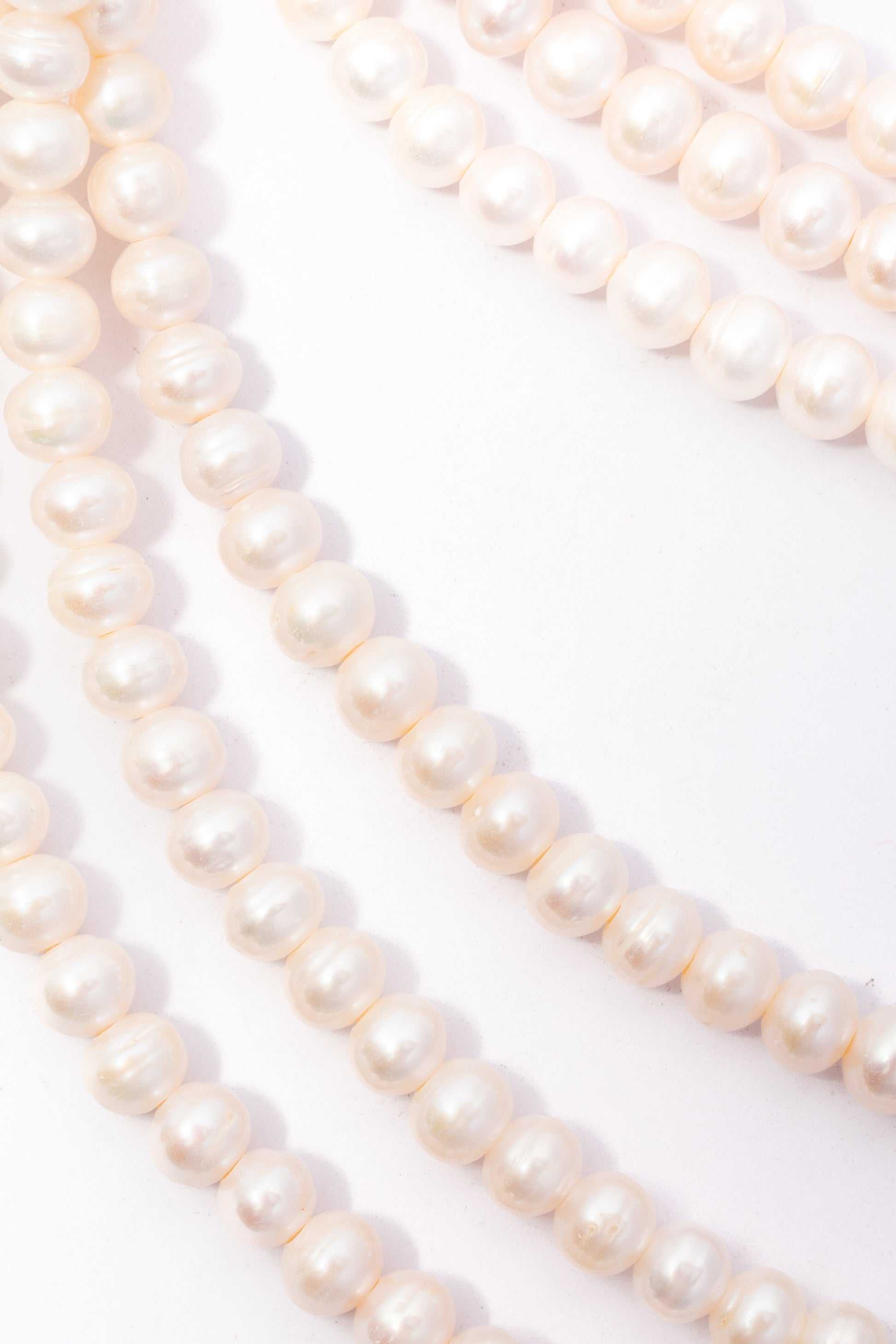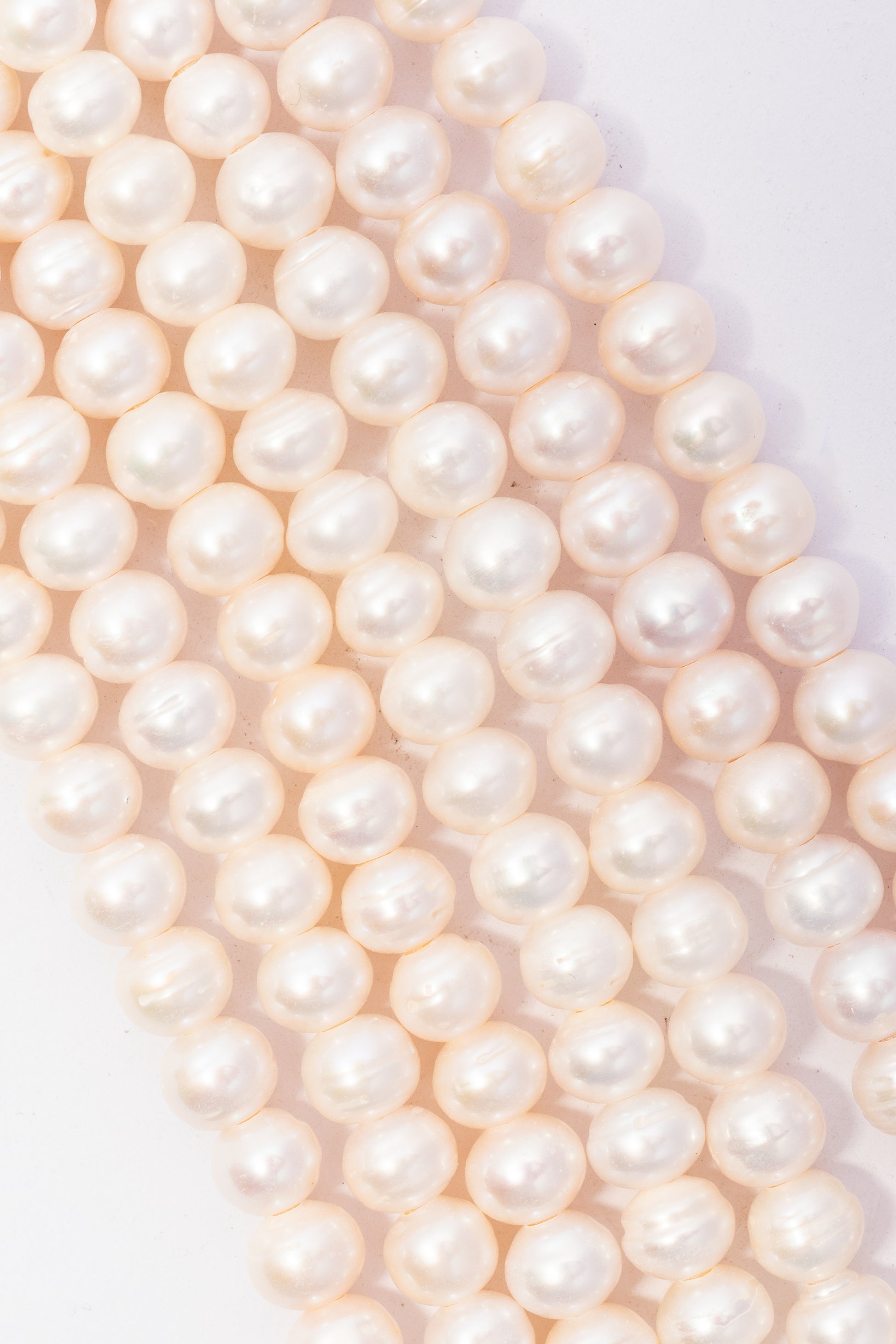 Hilo de perlas cultivadas con perforación grande, presentadas en tira continua. Cada perla exhibe una forma esférica perfecta con superficie nacarada de brillo suave en tonos blanco crema. Su estructura uniforme y compacta las convierte en la opción ideal para crear collares elegantes, brazaletes multifilamento y joyería nupcial de diseño sofisticado. Perfectas para artesanos que buscan componentes de calidad con versatilidad estética clásica.