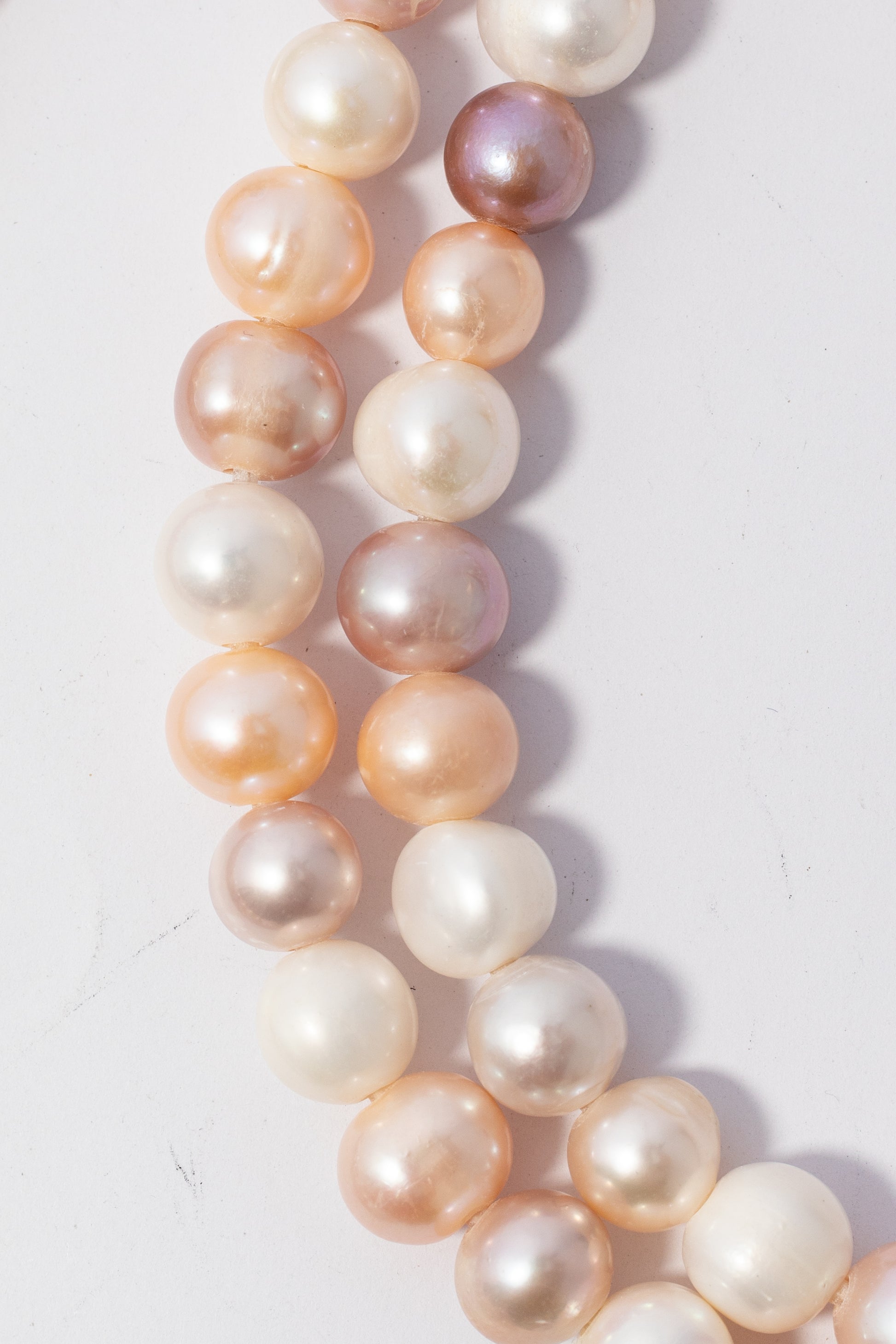 Hilo de perlas cultivadas con forma esférica perfecta, presentadas en una tira versátil de gran tamaño. Destaca por su delicada paleta multicolor en tonos pastel —blanco crema, rosa melocotón y lavanda— con un brillo nacarado e irisado que captura la luz de manera cautivadora. Su estructura geométrica uniforme y compacta las convierte en la opción ideal para crear collares de autor con presencia visual, brazaletes con profundidad de matices o accesorios contemporáneos que fusionen romanticismo y sofisticación. Perfectas para joyería de diseño personalizado.