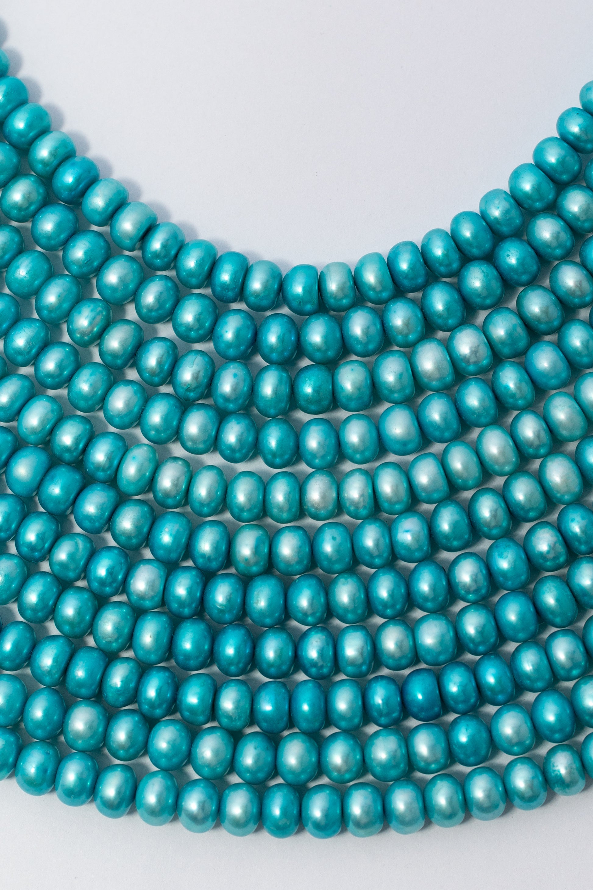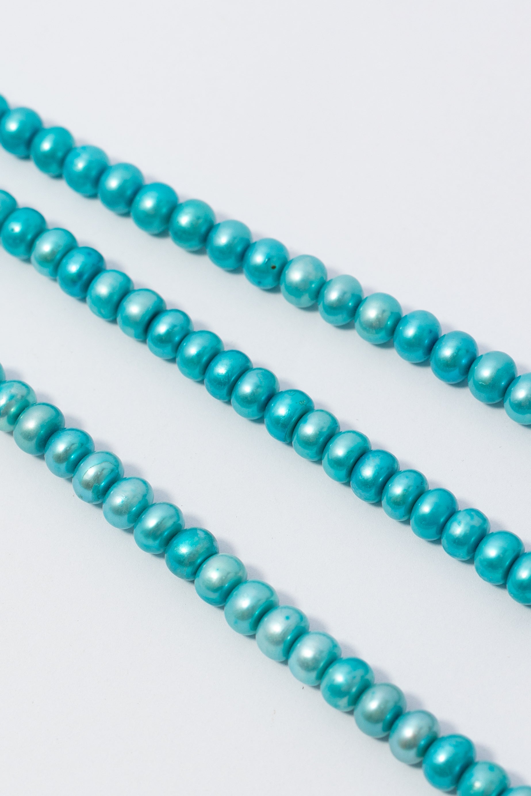 Perlas cultivadas en forma de rondelle con un elegante tono azul turquesa y acabado metálico nacarado. Su estructura geométrica achatada y uniforme ofrece una alternativa moderna a las perlas tradicionales, perfecta para crear collares densos y contemporáneos, brazaletes multicolor con impacto visual o accesorios de verano sofisticados. La textura lisa y el brillo intenso de cada pieza las convierten en componentes ideales para joyería de autor que busca destacar con color y estilo.